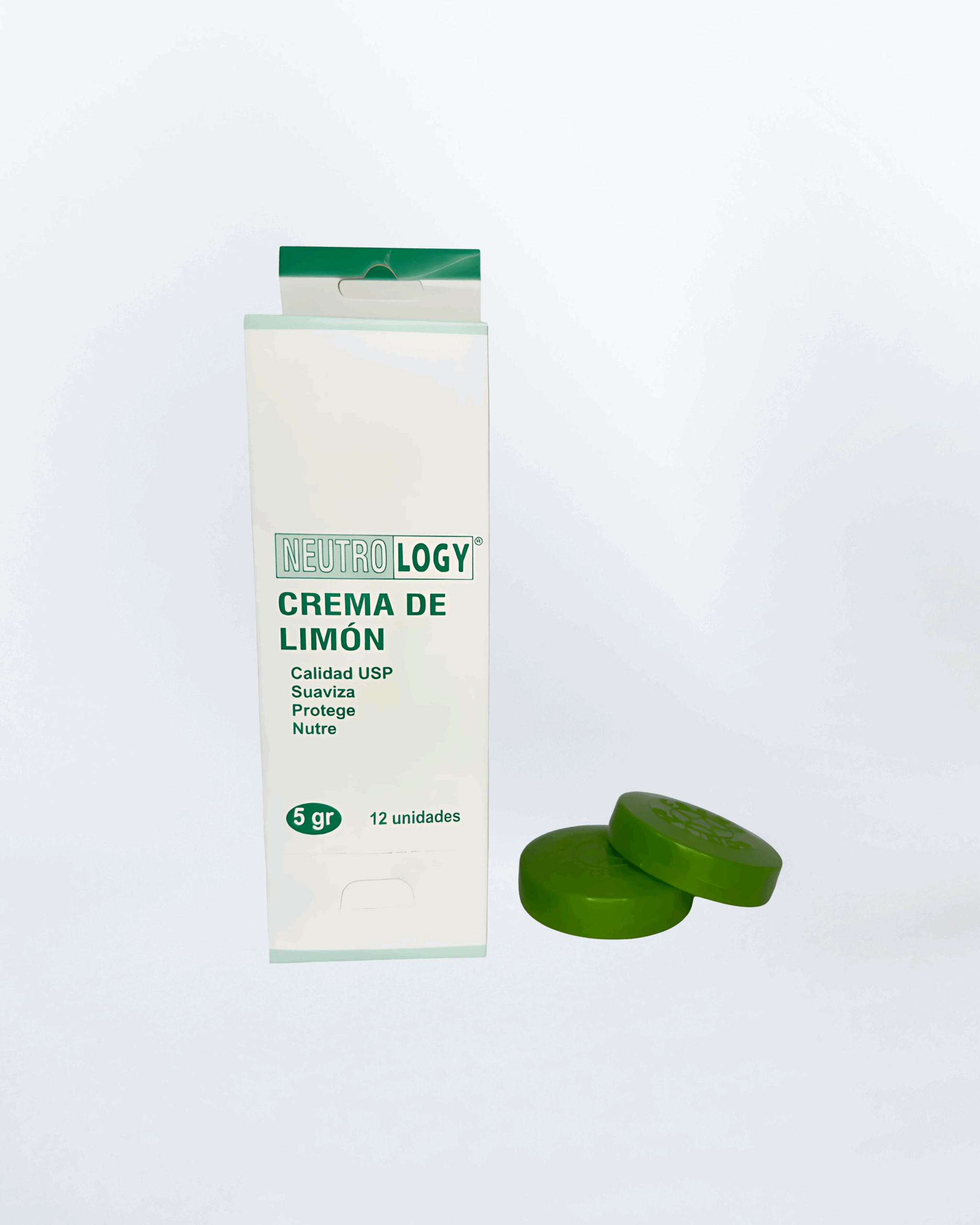 Presentación en miniatura de crema de limón (5 gramos 12 unidades), ideal para llevar y aplicar en zonas secas o irritadas.
